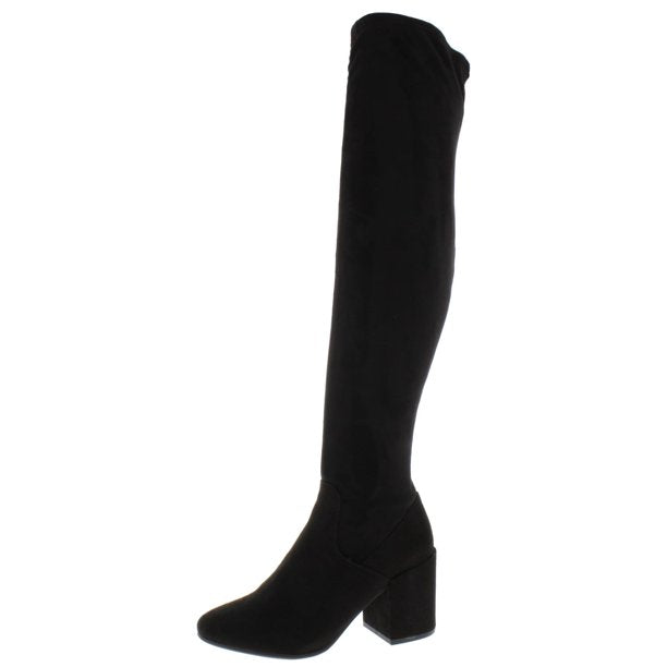 - Round-toe over-the-knee boots with a half side zipper closure