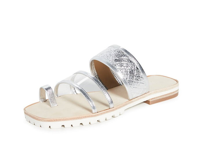 Botkier Maje Clear Slide Sandals In Silver Leather
