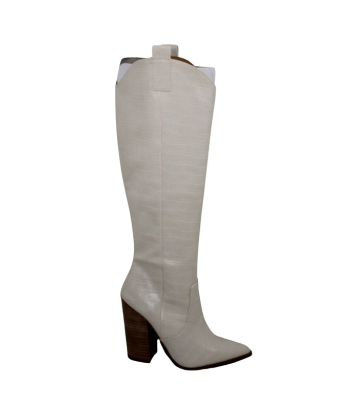 Exotic embossed texture adds extra edge to the cool Western styling of the Vanya boots from DV Dolce Vita.