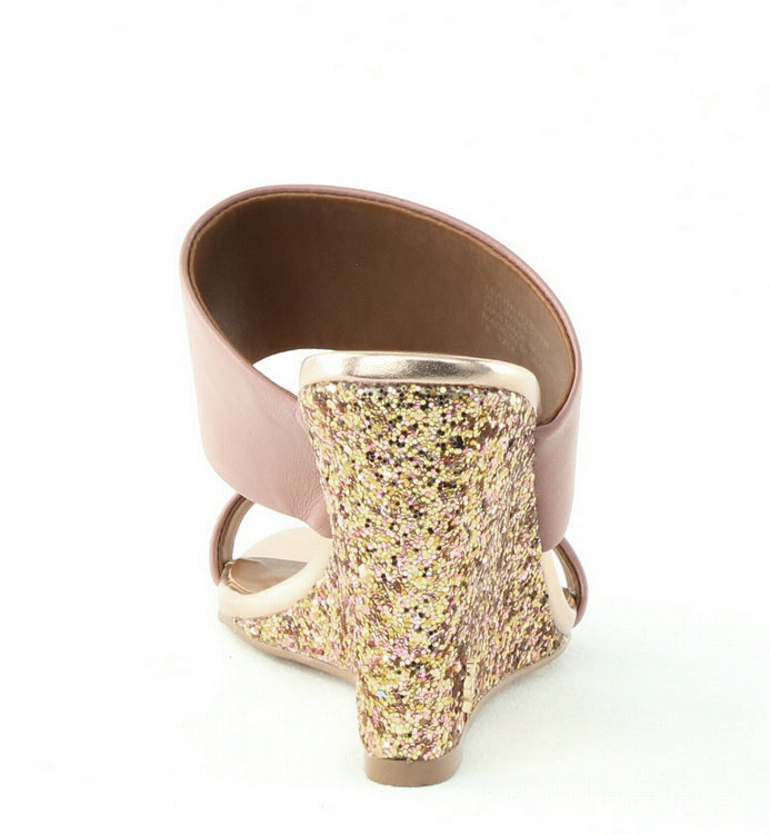 Kurt Geiger Women's Charing Leather Glitter Wedge Sandals Pink