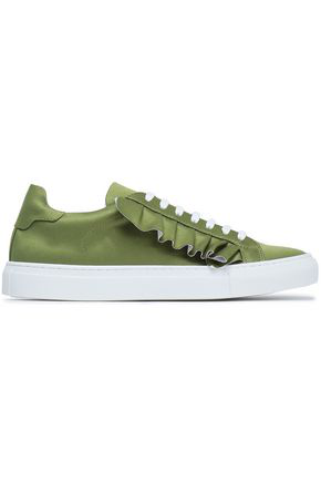 Joshua*s Woman Ruffle-Trimmed Satin Sneakers in Army Green