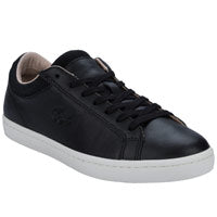 LACOSTE - STRAIGHTSET BLACK LEATHER SNEAKERS **FREE SHIPPING**