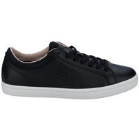 LACOSTE - STRAIGHTSET BLACK LEATHER SNEAKERS **FREE SHIPPING**